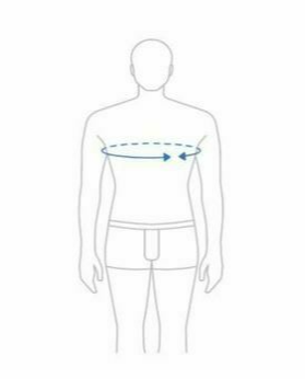 Place the measuring tape around your back, under your armpits (with arms down) across the broadest part of your chest to take this measurement.