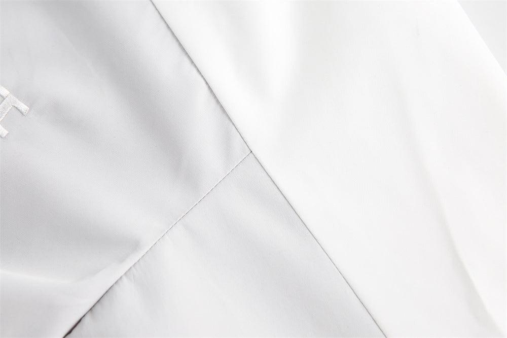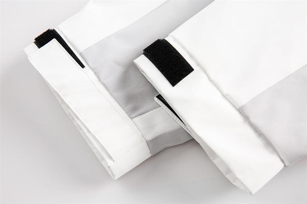 This outdoor sports zipper jacket features a trendy contrast color design, offering both style and functionality. Available in white, it includes convenient zipper pockets for secure storage, making it perfect for active lifestyles. The jacket is made from durable polyester fiber, ensuring comfort and durability during outdoor activities.
