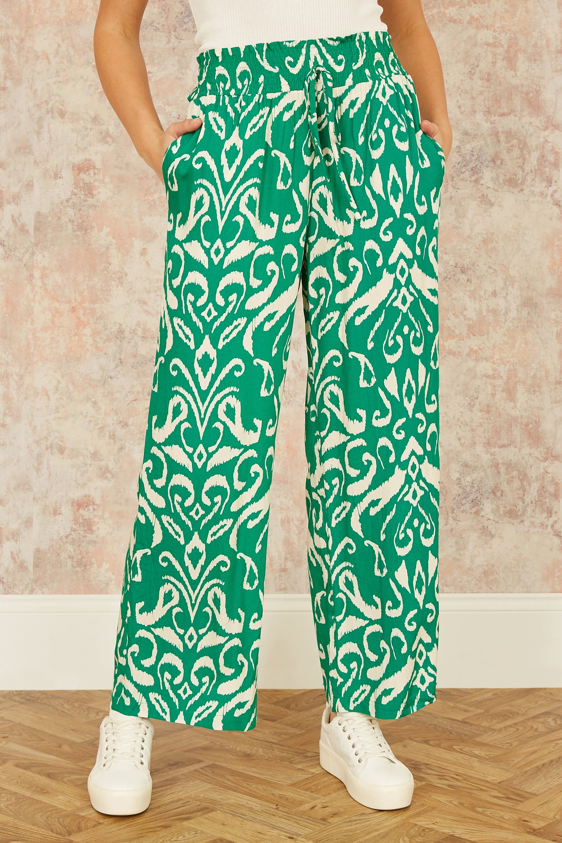 Yumi Green Ikat Print Relaxed Fit Trousers